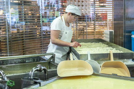 Gleichzeitig haben Sie die Gelegenheit, die Käseherstellung in unserer Schaukäserei zu verfolgen.